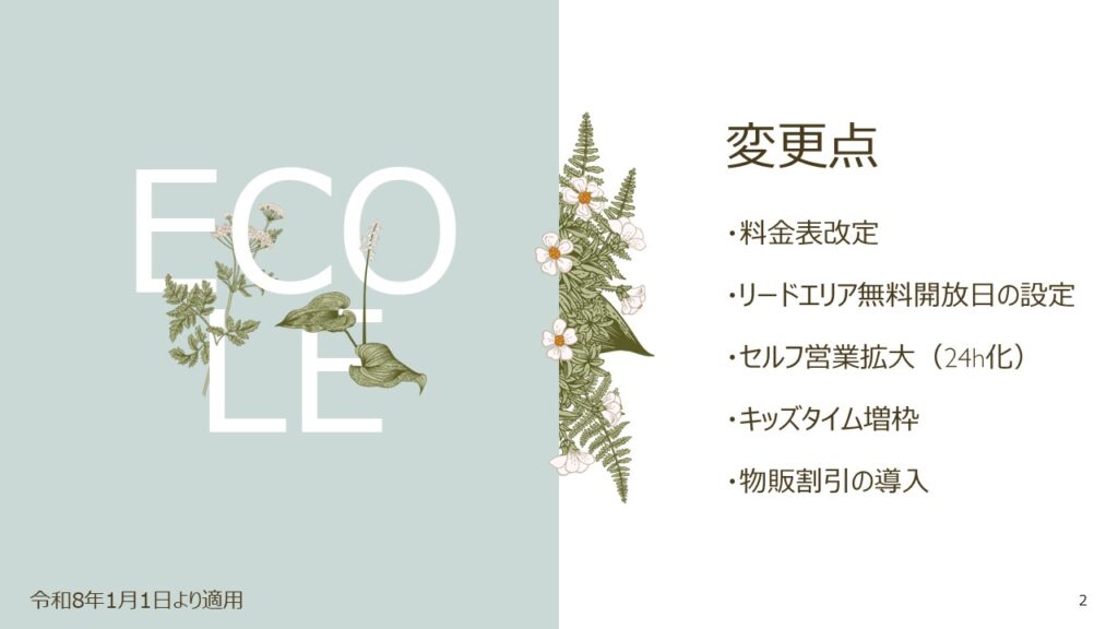皆さま、いつもエコールをご利用いただき有難うございます。