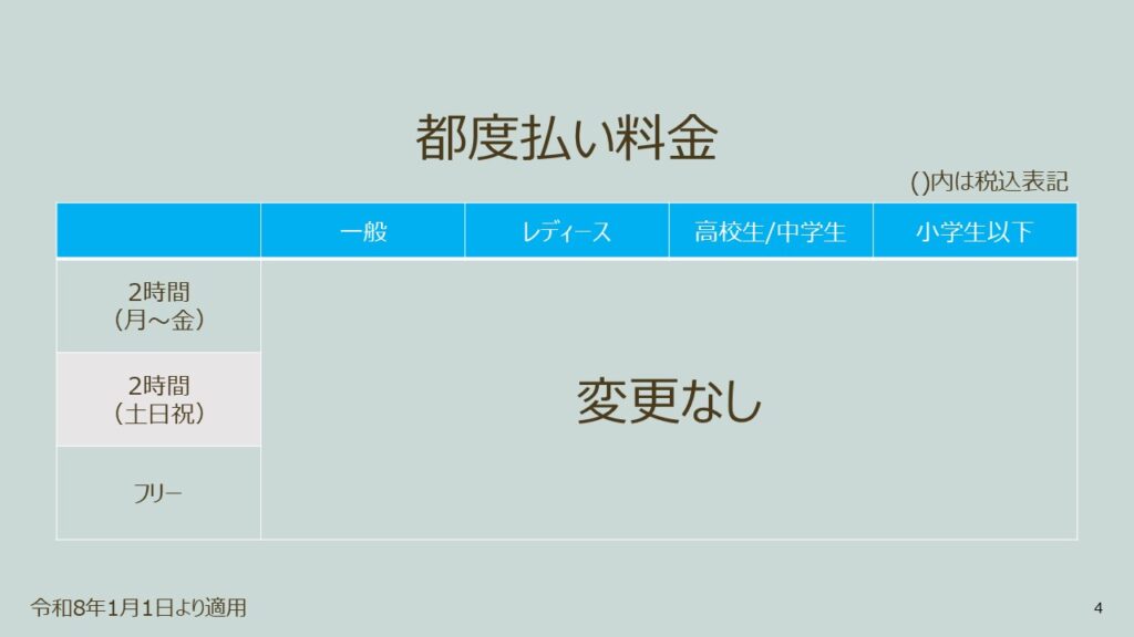 当店は良くも悪くも九州最大規模の施設であり、家賃も光熱費も元から他店よりも水準が高いことは言うまでもありません。しかし、皆様にとって毎月の出費となる月会費は何とか据え置けるようにと試行錯誤やってきた次第です(夏季限定料金もベースを上げないための施策でした)。心苦しいながらも今回ベースの値上げとなります事、本当に申し訳ありません。