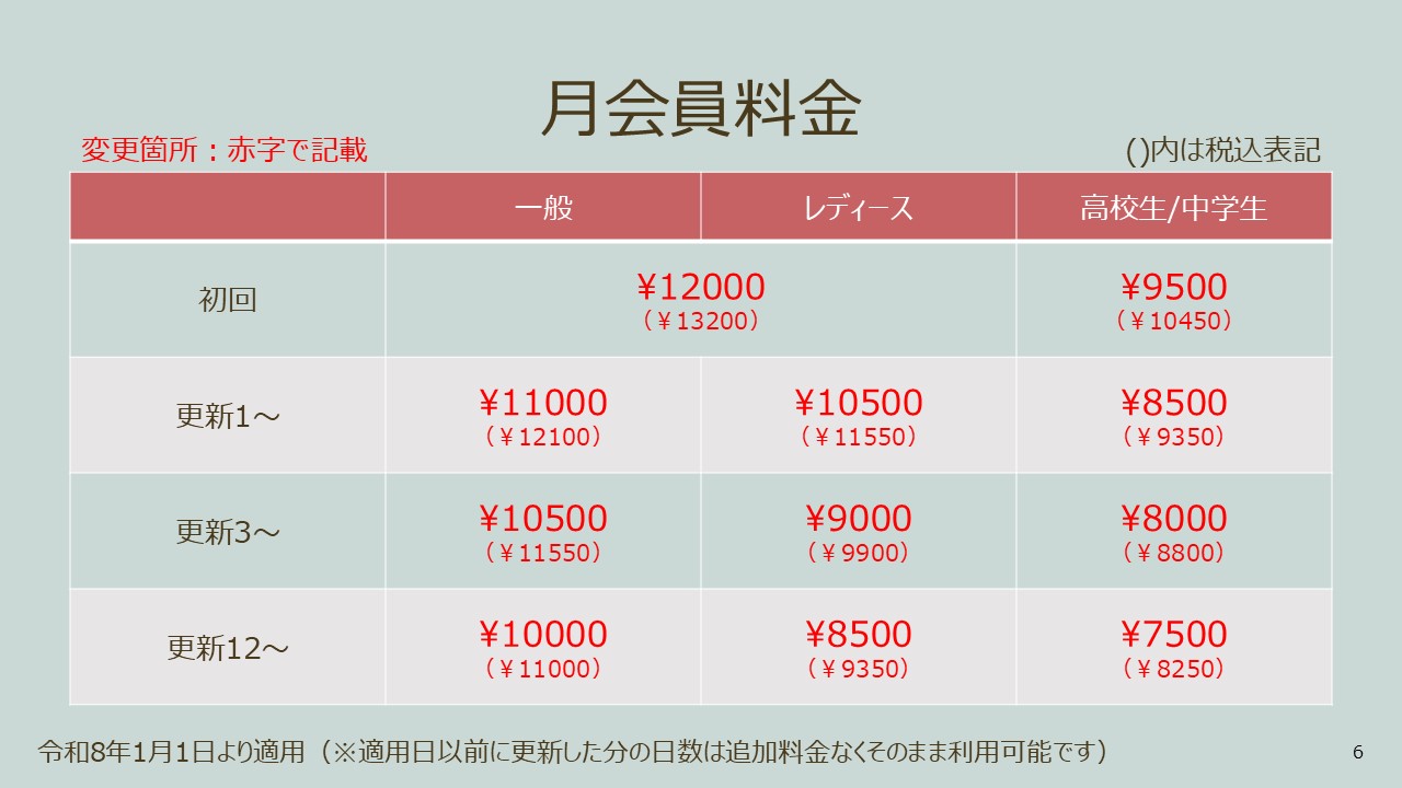当店は良くも悪くも九州最大規模の施設であり、家賃も光熱費も元から他店よりも水準が高いことは言うまでもありません。しかし、皆様にとって毎月の出費となる月会費は何とか据え置けるようにと試行錯誤やってきた次第です(夏季限定料金もベースを上げないための施策でした)。心苦しいながらも今回ベースの値上げとなります事、本当に申し訳ありません。