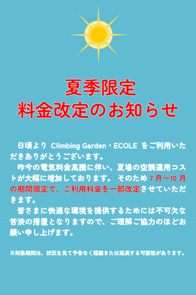 皆さまにはご負担をおかけするばかりで申し訳ありません。施設を維持していくためには不可欠な措置となりますので、何卒ご理解いただき変わらぬご愛顧のほどよろしくお願いいたします。