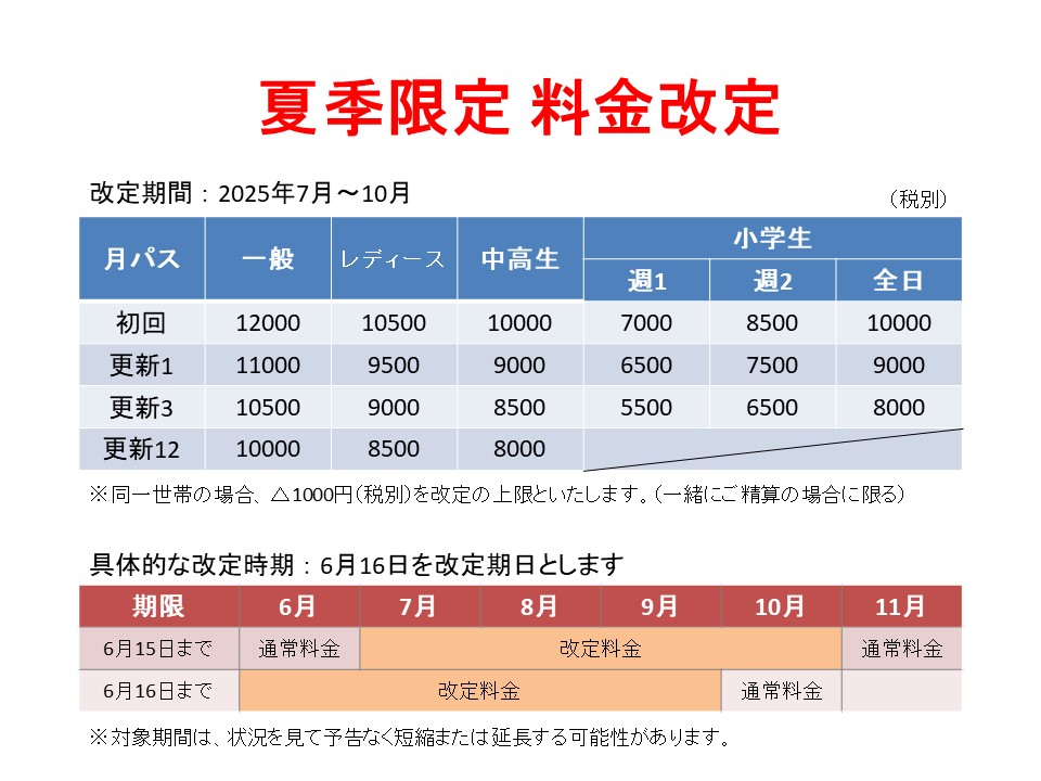 皆さまにはご負担をおかけするばかりで申し訳ありません。施設を維持していくためには不可欠な措置となりますので、何卒ご理解いただき変わらぬご愛顧のほどよろしくお願いいたします。