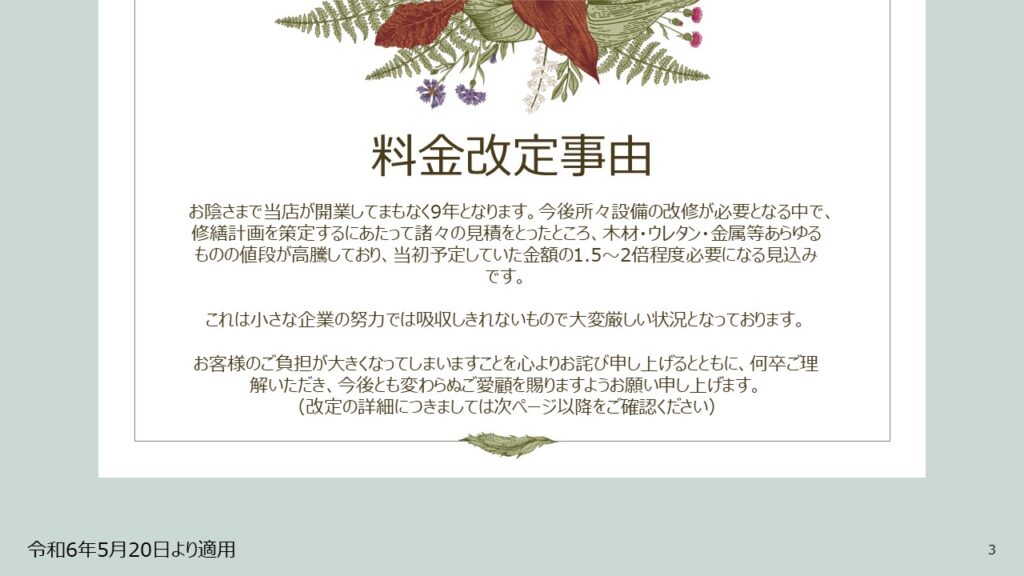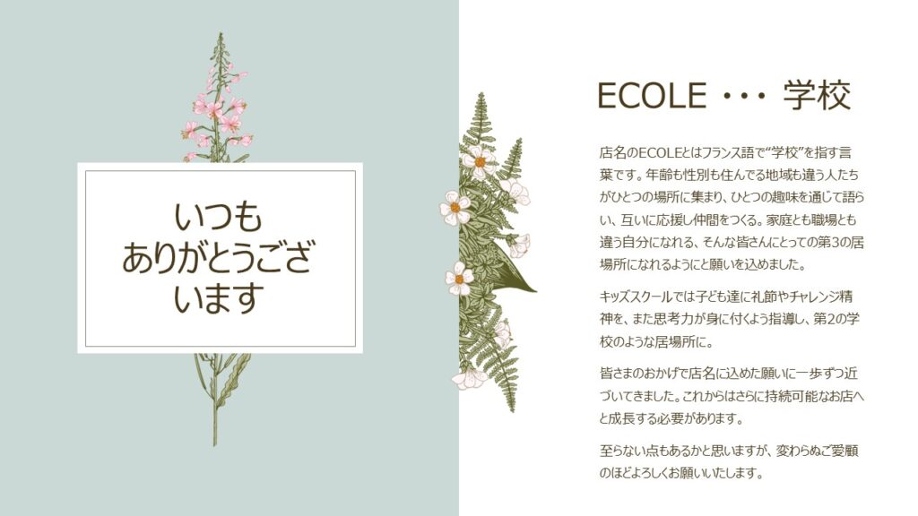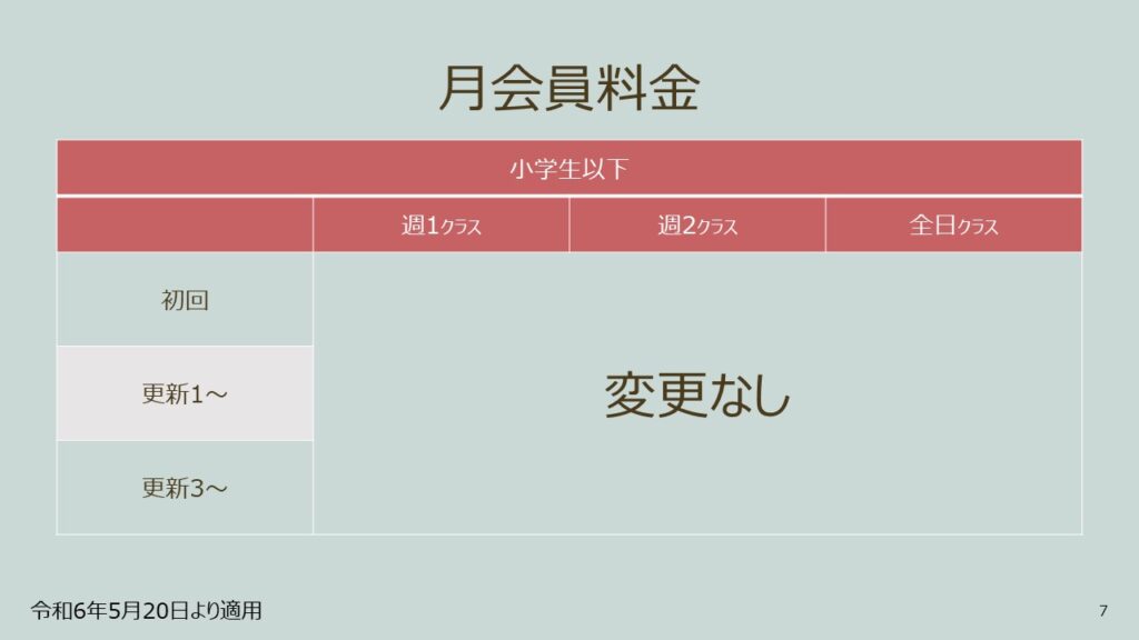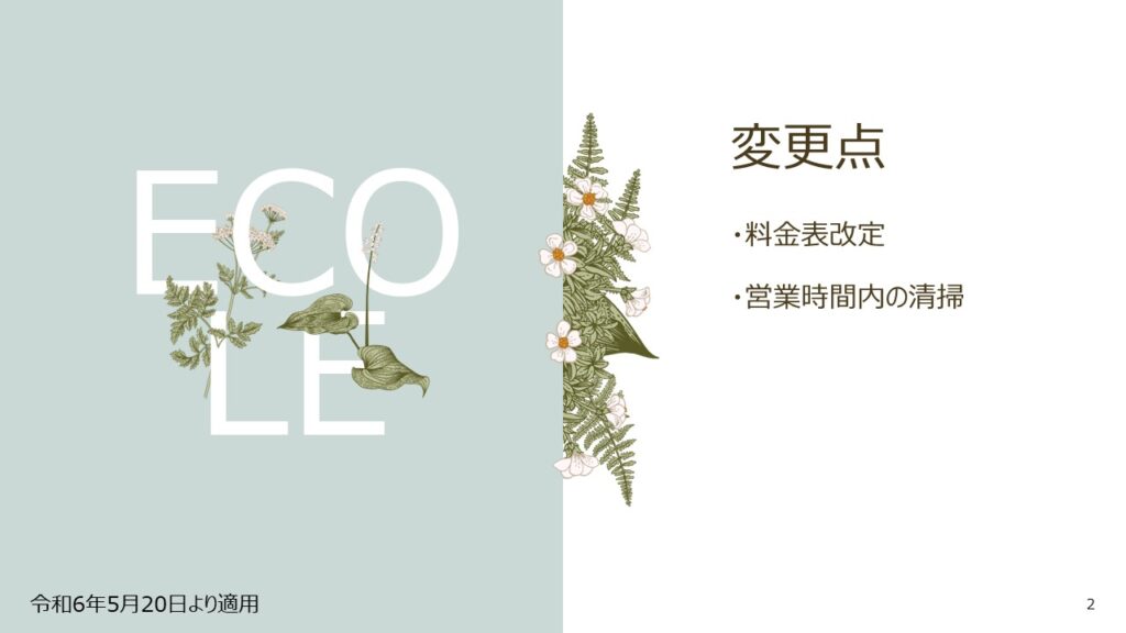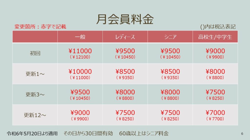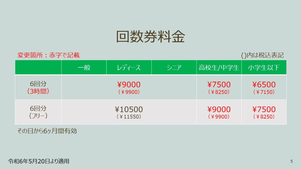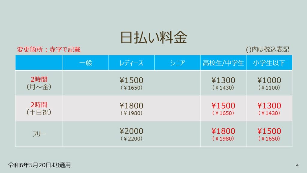 料金表改定のお知らせ 2024 5/07 ECOLE ブログ 2024年5月7日2024年5月8日 URLをコピーしました! ECOLE ブログ よかったらシェアしてね! URLをコピーしました! URLをコピーしました! リード/メンバーシップ料金改定のお知らせ 「キッズスクール再編」について おすすめ記事 保護中: 大野城市スポーツ少年団 様 2025年9月26日 保護中: サンフィールドスポーツクラブ 様 2025年9月9日 セルフ営業サービスの利用説明資料 2025年6月4日 セルフ営業サービスのご利用に関する重要事項説明書 2025年6月2日 保護中: セルフ営業の利用登録と入退店について 2025年5月31日 シニア割引制度終了のご案内 2025年5月20日 夏季限定)料金改定のお知らせ 2025年5月5日 「キッズスクールOB・OGのご利用」について 2025年3月7日