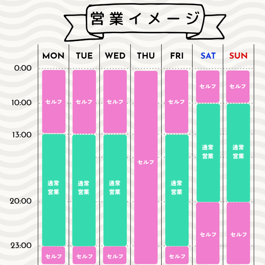 なんと!セルフ営業をご利用いただくことで24時間営業となります!
