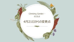今後も皆さまにはご協力を賜ること、ご迷惑をおかけすることもあるかと思います。クライミングガーデン・エコールを今後とも変わらぬご愛顧のほど、よろしくお願い申し上げます。